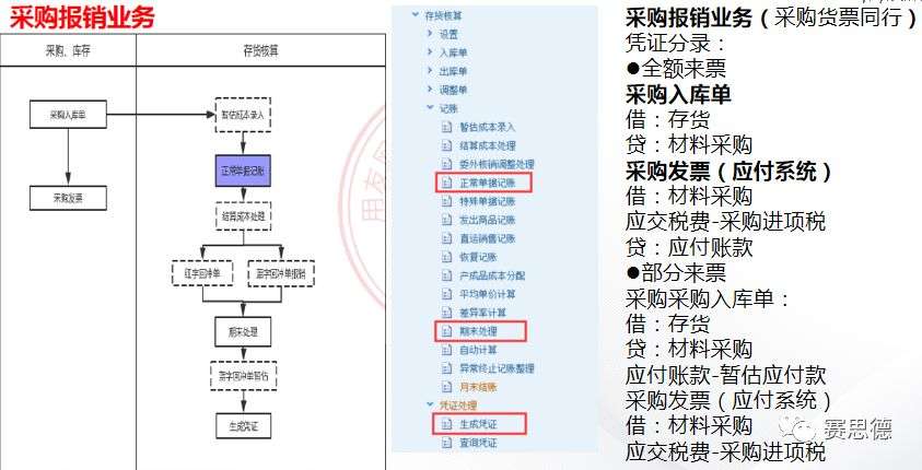 老師將這兩種業(yè)務(wù)畫了一個(gè)清晰的流程圖,并將每個(gè)節(jié)點(diǎn)對(duì)應(yīng)單據(jù)生成的憑證列舉出來(lái),給大家梳理一遍。最后還將采購(gòu)結(jié)算余額表與暫估材料商品余額表對(duì)賬,材料采購(gòu)科目對(duì)賬的詳細(xì)思路與步驟進(jìn)行總結(jié),下次大家再遇到這個(gè)問(wèn)題就不會(huì)束手無(wú)策啦。